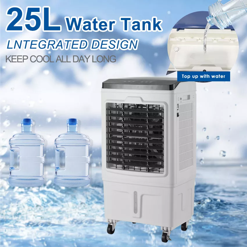 Wenn Sie einen zuverlässigen Lieferanten für ferngesteuerte DC-Luftkühlerventilatoren oder andere Arten von industriellen Luftkühlern suchen, können Sie sich für Koyer entscheiden. Unser Produkt zeichnet sich durch außergewöhnliche Haltbarkeit und minimale Fehler aus und verfügt über einen 25-Liter-Wassertank mit Touchscreen-Steuerung und Fernbedienungsfunktionen.